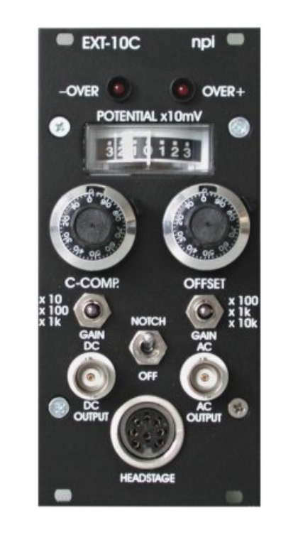 - EXT-10C Amplifier module with capacity compensation, with headstage, width = 1